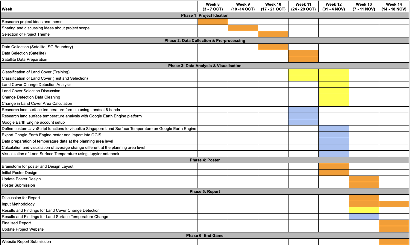 The main objective of this project is to look for and make use of appropriate satellite imagery to detect and examine land cover changes over the years. Our team will use a mixture of Land Surface Temperature (LST), Classification of Forested Areas, and Classification of Urbanization to analyse the changes in those data.