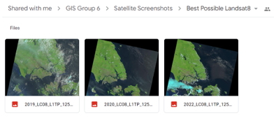 Whenever we find ‘good’ satellite images, we will store them by their name given by the satellite to the Team’s Google Drive for choosing and comparing.