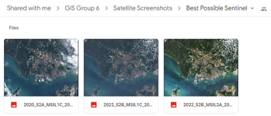 The goal is to select the satellite image with the least cloud for both study years 2020 and 2022. Initially when we used the filter function to get the images with cloud cover within 10 – 15%, we noticed that it is not as useful as the low percentage of cloud covered Singapore island for that image. Thus, we need to manually look through all the images (800+ Across both Satellite) to look for the best one possible. In addition, good images may be limited. Thus, we are less strict in terms of the study years. For Study 2020, we accept Satellite images in 2019 or 2020. For Study 2022, we will accept the end of 2021 or 2022.